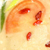 Wählt man den Feuertopf (14,90 Euro), wählt man auch die freie Auswahl am großen Büffet, des sehr sorgsam von den 5 Flavor-Frauen gepflegt wird. Dazu zählt auch eine kalte, nicht fonduefähige Ecke, die uns kurzerhand als Vorspeisenreservat diente. Während also bereits der Topf in der Mitte auf original chinesischer Kitsch-Heizplatte nach seiner Betriebstemperatur strebte, sorgten die etwas trockenen Sesam-Bällchen mit Mohn-Füllung für Knabberspaß vorab. Sehr viel besser gefielen jedoch die an russische Pelmeni oder polnische Pierogi erinnernden Teigtaschen. Kleine kompakte gekochte Gebilde mit einem aus prägnanten Gewürzen und Hackfleisch bestehenden Innenleben. Ich weiß gar nicht was es genau war, aber die waren gut. Unsere kleine chinesische Connaisseurin legte uns noch die Schweinepfoten ans Herz. „Ein Klassiker in China“. Ein kleiner Test genügte jedoch und ich zeigte der Pfote die kalte Schulter, um mich den warmen Dämpfen zu öffnen.
