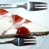 Kaum hatte ich die deutschen Schurken hinter mir gelassen, gings auf nach Amerika. „NYC Cheesecake“. Also doch nicht Mitte oder Munich, sondern so global wie das Netz ist man hier in Oberholz, das eigentlich ja gar nicht auf einen Ort, sondern auf den Namen des Eigentümers verweist. Und dieser darf sich gerne mit gutem Kuchen rühmen, denn der Cheesecake bestach durch seinen überaus karamelligen mit Erdbeerscheibchen bestückten Boden, der Heinrich den Stolz raubte und ihn sanft aber bestimmt ins Abseits beförderte. Das war wirklich ein ganz famoser Kuchen (2,80 Euro) zu dem ich mir – wie es sich im Staate Oberholz gehört – noch einen großen Kaffee-Latte genehmigte. Als Kuchen-Location ist der Laden also absolut empfehlenswert. Und auch zum Rausgehen mit Freunden und zum Gucken wer da kommt, bevor die Rechenmaschinen sich öffnen, die Gesichter verhüllen und sie in ihrem etagenübergreifenden Datenbrei vereinnahmen. Ich komme wieder – auch ohne Laptop.